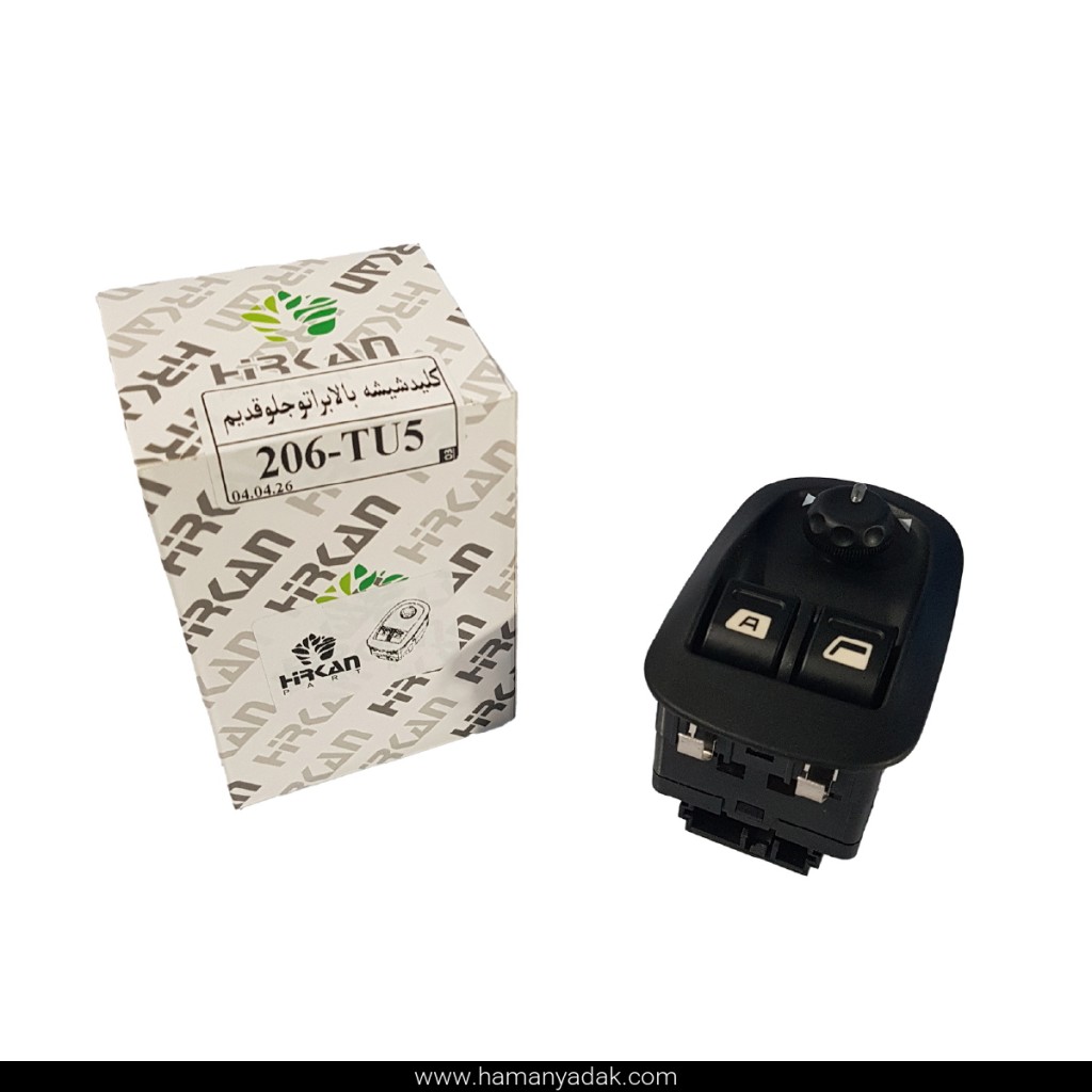 کلید شیشه بالابر اتو پژو 206 تیپ 5 قدیم دو سوکت برند هیرکان